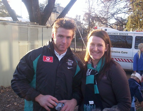 I’ve got a few other favourite memories. Going to the SCG in 1998 with my best friend Cath to watch Paul Roos play his last ever game in a final against the Crows and it absolutely bucketed down. A woman sitting behind us had on white jeans and a red suede anorak and ended up with pink jeans. We caught the train back to Goulburn the next day, fell asleep and only woke up when they made the final announcement for the station. We jumped up in a panic and left all our bloody lollies behind. I went to a Swans v Eagles final at Homebush in about 2003 or 04 where it poured down as well and lightning hit the stadium. We had no idea but apparently they weren’t far off calling off the game. I remember my dad and I were picking seats and we sat in the open; he said “it hasn’t rained in six years, it’s not going to rain tonight.” Of course we got drenched though at least Sydney won. Going to Adelaide is always special and I’ve seen a few Showdown wins and the 2007 prelim where we smacked North Melbourne was a great one. ANZAC day this year watching Port beat Hawthorn in my first Adelaide Oval experience would have to be my favourite game of the last couple of years. I have a lot of great memories, even the 2007 grand final where we got flogged by Geelong is one of my favourite football memories, which I’m sure sounds weird. At the time I was living with Cath, who is a Cats supporter, so we had a special GF day breakfast at home together with her now husband Matt, then we went to the MCG together before heading to our separate areas. It was over by about quarter time for us but I stayed for the whole game, all the way through to number 17 Shannon Byrnes in the medal count. I cut my losses then and went to meet up with other friends at the European Bier café on Exhibition Street and proceeded to get hugely drunk. Cath showed up a few hours later and we were camped at the top of the stairs drinking Jaeger Bombs together, me in my Port jumper and scarf and her in all her Cats gear. About 8 or 9pm the venue cracked the sads and said no more club colours so people would get to the top of the stairs and see us there in all our gear getting along and just go “WTF?!” It was such a big night. I threw up under a table and lost my 2004 premiership scarf. At one point I had my head down on the table and Cath said this guy was rubbing my back and telling me it was going to be OK, we’d be back next year. She came up and said to him I wasn’t crying, I was just passed out. Very funny. I called the next day but they didn’t have my scarf sadly.