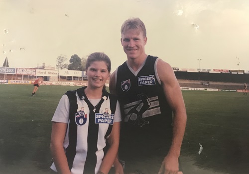 When you become friends with people as an adult and find out about their passion for football, you often miss out on the best parts. Because you get the mature, refined, sedate version of a fan, not the wild unchecked passion of someone’s teenage years where they treated players like modern gods or pin up idols. So it wasn’t until recently that I came to know the full extent of Janae Houghton’s misspent youth. Over beers in Canberra a few weeks ago I learned the full extent of her Collingwood obsession… and it only went downhill from there. When she told me she’d actually written a song about Tony Modra, it sealed the deal and I knew I had to find out not only what she thought about football, but everything about her days as a young football tragic.