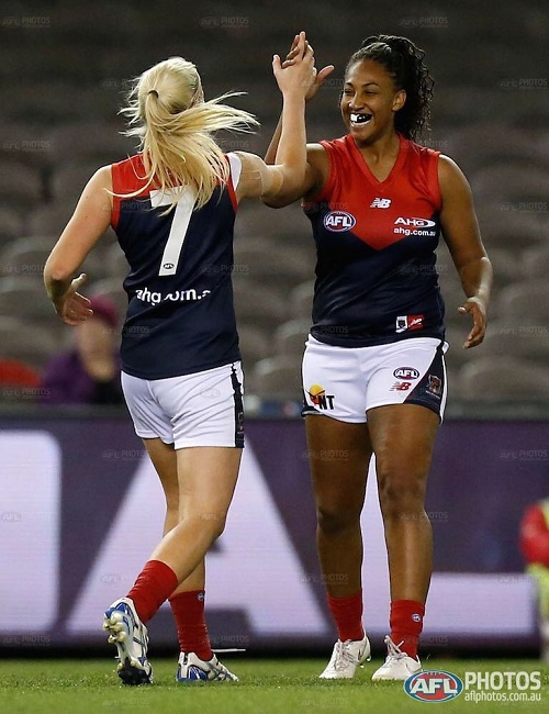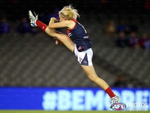 Probably one of my earliest memories of footy is my older brother playing in the junior footy on the MCG, same as they do now, and I asked dad if I could do it. He said nah nah nah, girls aren’t allowed to play footy – I get there and there were other girls playing, and dad was like, I just thought you were too little and didn’t want you to get hurt. So I missed my one chance to play on the MCG.