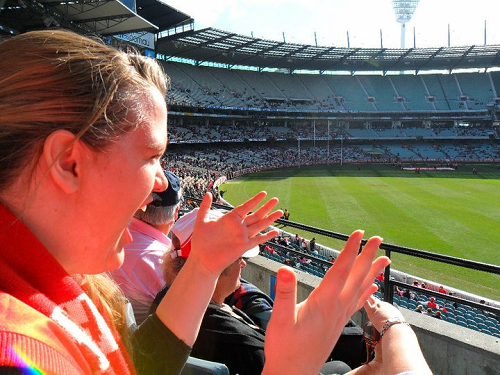 I’m very sedate watching the footy. I like to support the umpires… hahaha. No, I’m not as loud as I used to be and it does depend on what comp you’re at. I remember I hurled a bit of abuse at Matthew Pavlich one day at a game and just mentioned to him that he had nothing. So then he’s taken a screaming mark and kicked a ridiculous goal and about 500,000 people turned around and looked at me. I had to stand up and make a quick apology. I do love Pav.